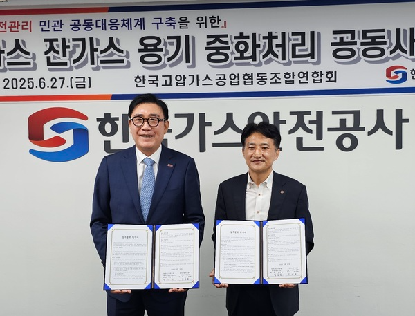 한국고압가스공업협동조합연합회와 한국가스안전공사 산업가스안전기술센터는 27일 가스안전공사 서울광역본부에서 ‘독성가스 잔가스 용기 처리 업무협약(MOU)’을 체결하고, 방치된 고위험 가스용기의 안전한 중화 처리와 체계적인 안전관리 기반을 마련하기로 했다.